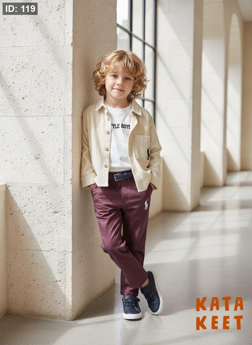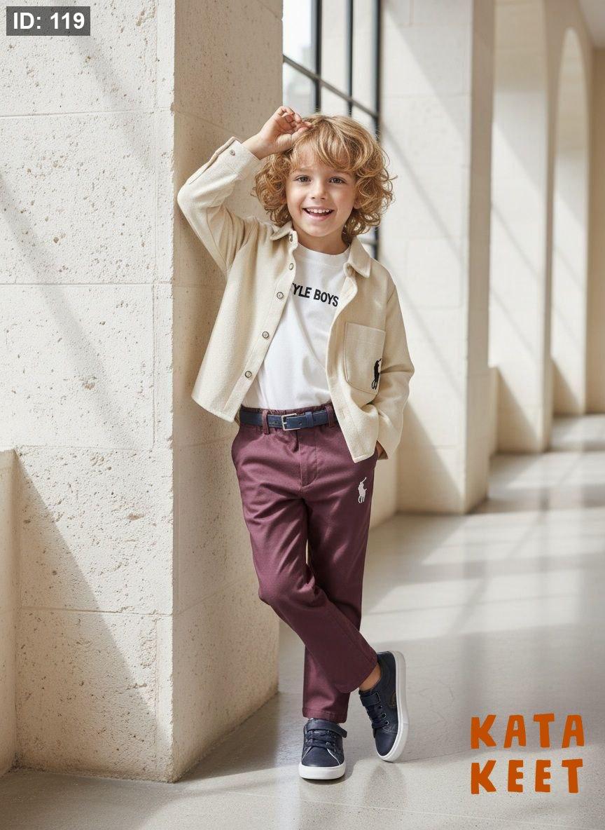 بلوزه لون ابيض مع جكيت لون بيج وبنطلون لون بوردو