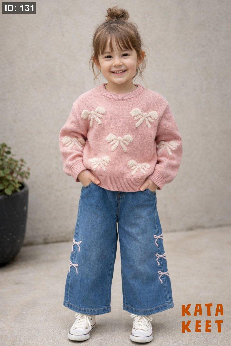 بنطلون جينز مع تصميم ببيونات على الجناب