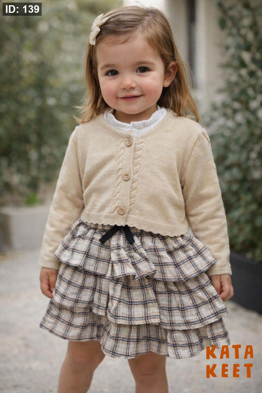 فستيان بيج مخطط مع جكيت خفيف لون بيج