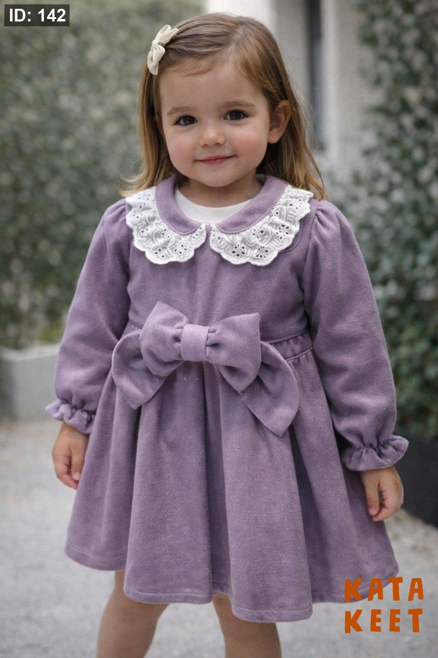فستيان لون ليلكي معتصميم دانتيل عالرقبه وببيونه كبيره عالبطن