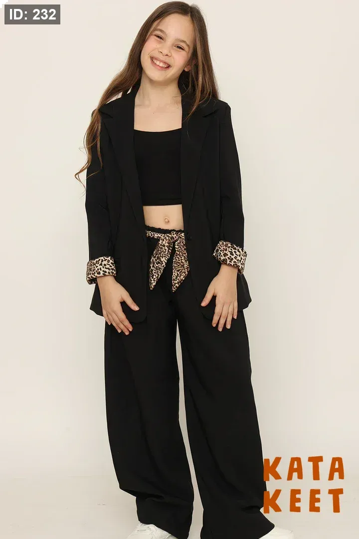 طقم بناتي جكيت وبنطلون لون اسود ومنومار