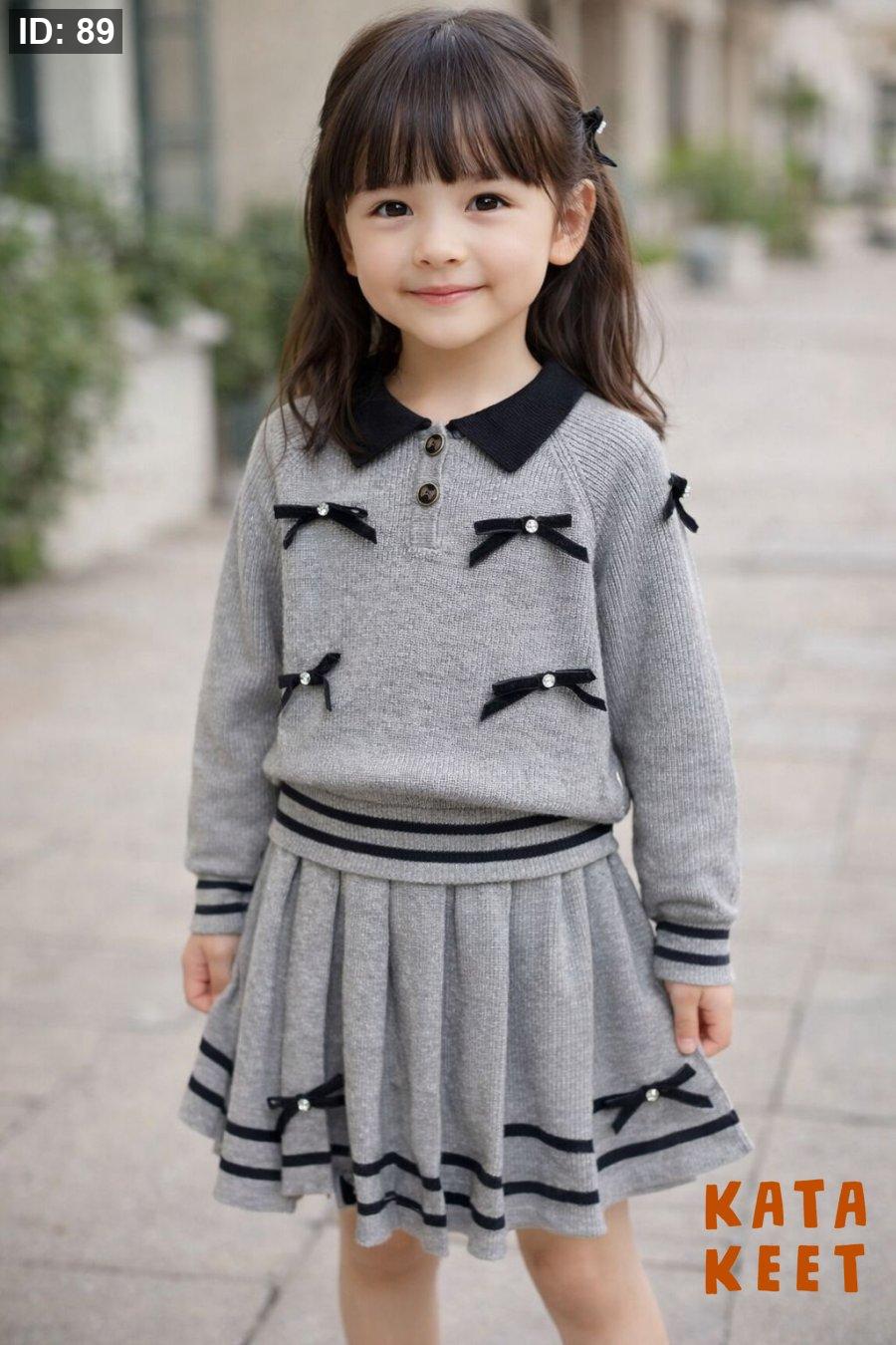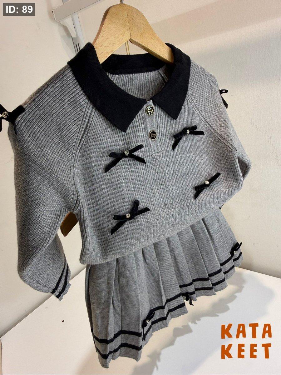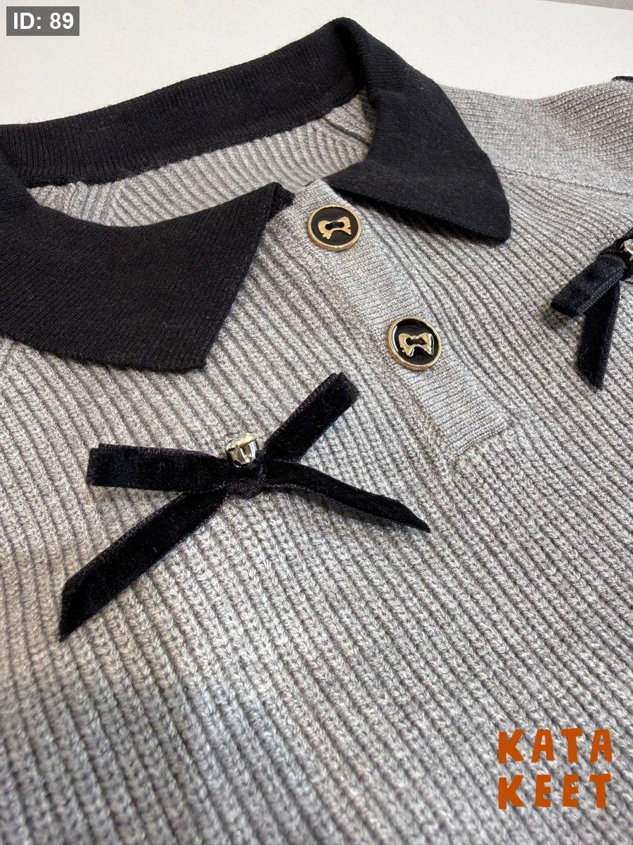 بلوزه رماديه مع قبه لون اسود مع تصميم ببيونات بلون اسود