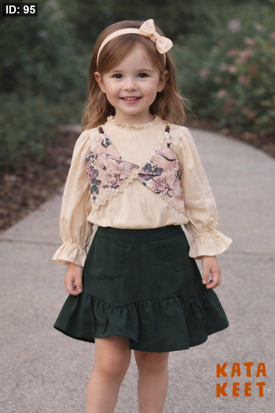 بلوزه لون بيج مع شيال مورد