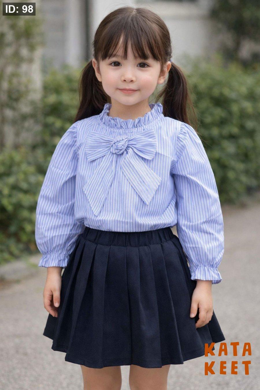 بلوزه لون ازرق فاتح مخططه مع ببيونه